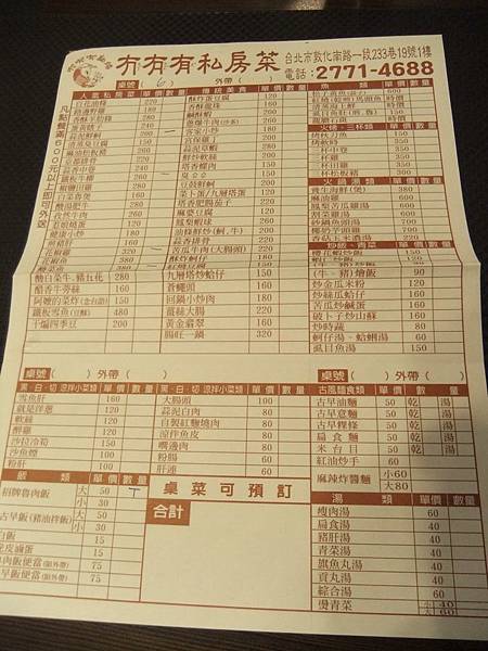 冇冇有(ㄆㄚˇ)( ㄉ一ㄥˇ) (ㄨˇ)私房菜