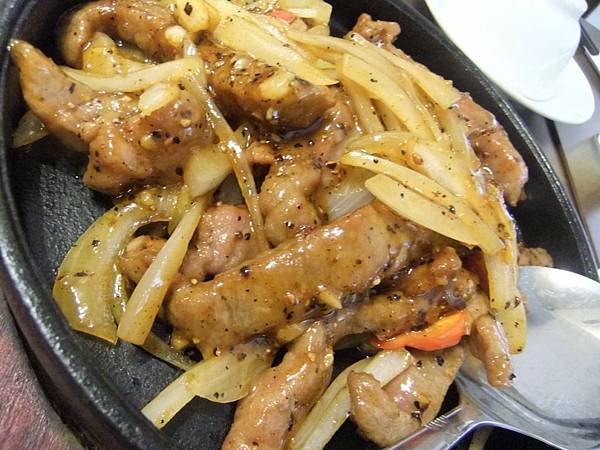 軟嫩的牛肉條搭配大量洋蔥及少許辣椒爆炒